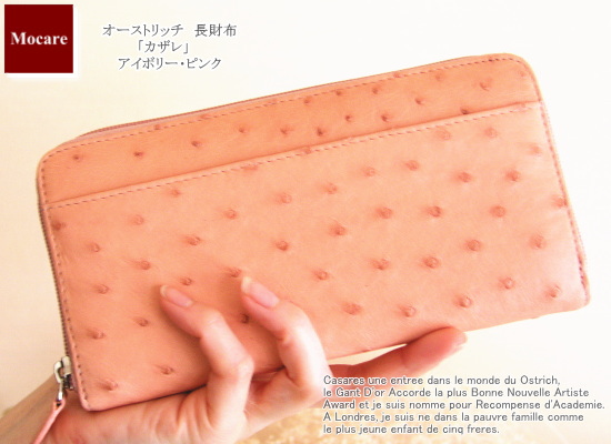 オーストリッチ ラウンドファスナー 長財布 「カザレ」 財布 ピンクベージュ レディース ブランド